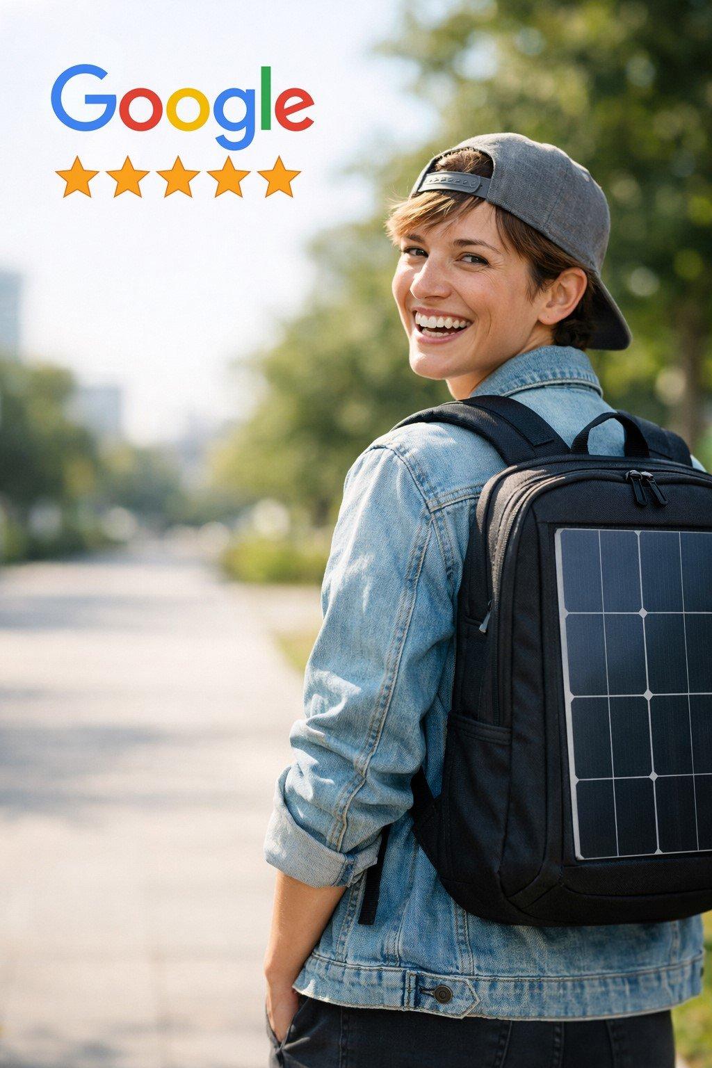 Unter allen neuen Google Rezensionen verlosen wir jeden Monat einen Solar-Rucksack. 🎒☀️